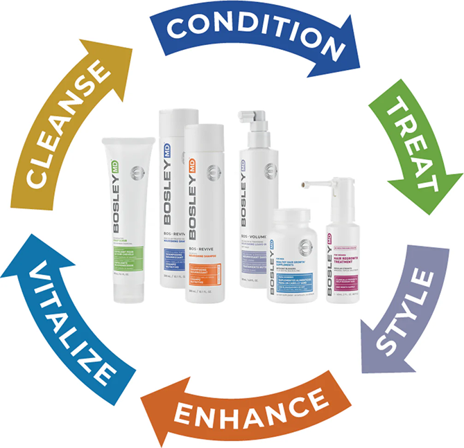 BosRevive Haircare has been formulated for those with visibly thinning hair and excessive hair loss. The BosRevive client may relate to the following”